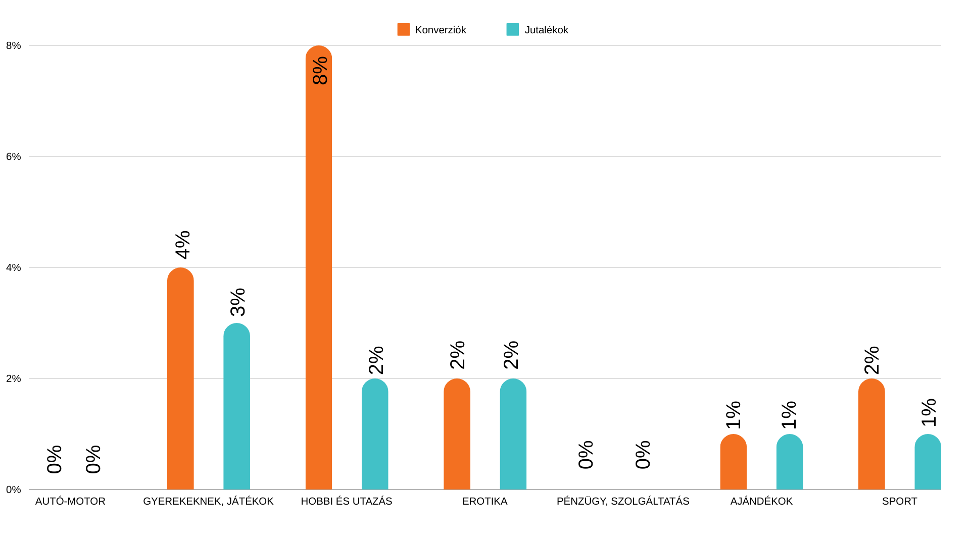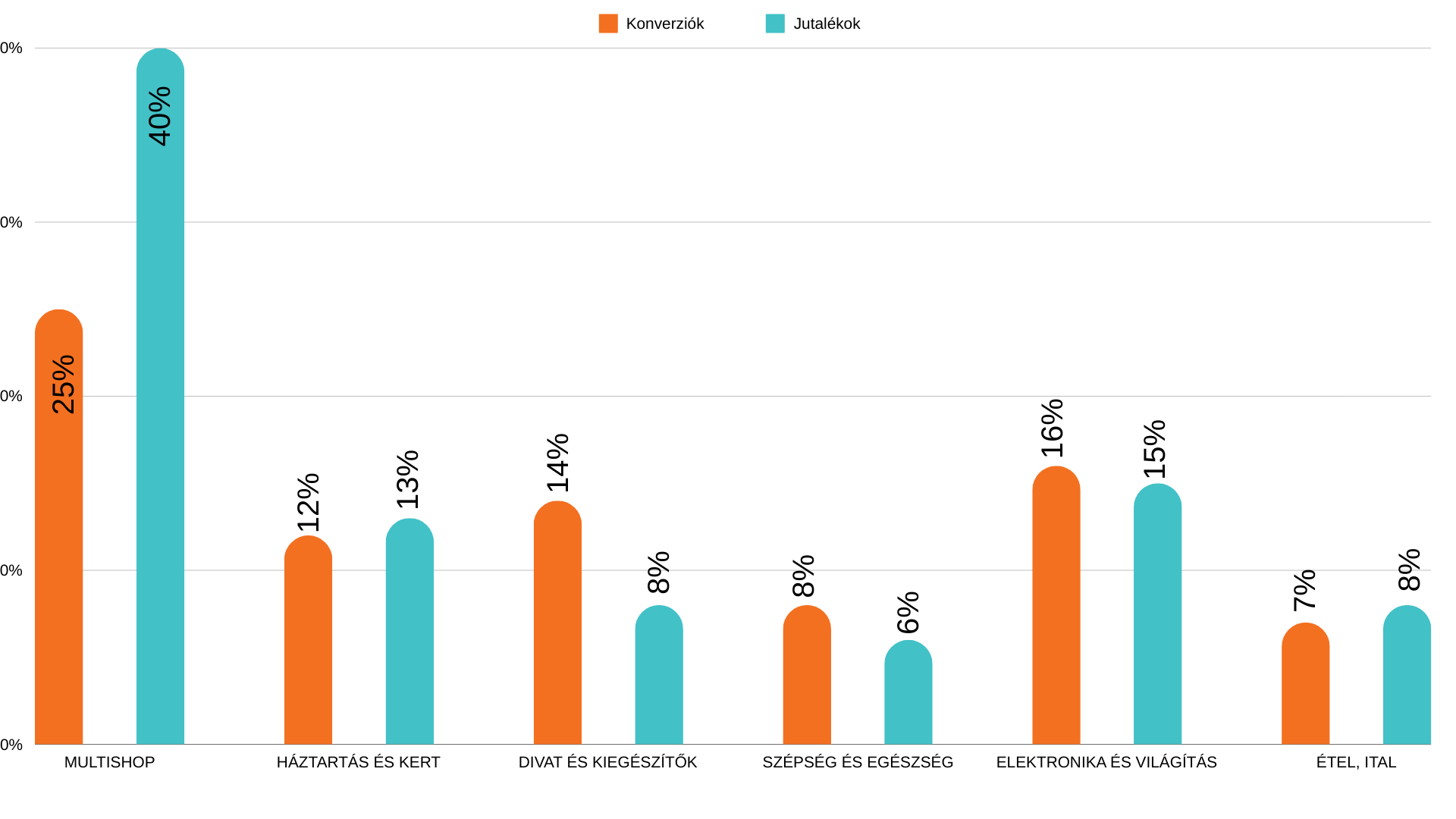 A konverziók és jutalékok eloszlását illetően továbbra is a Multishop kategória vezet, és teszi ki a konverziók és jutalékok legnagyobb hányadát. 1-1% nőtt a Divat és kiegészítők kategória, valamit az Elektronika szegmens is.