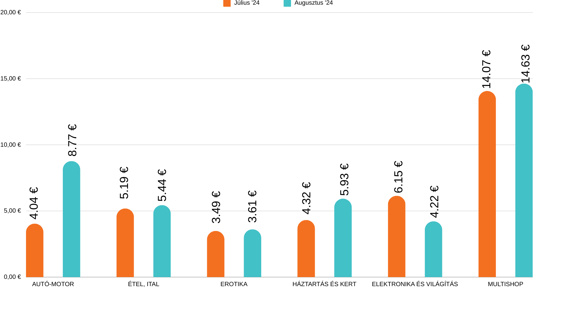 Ahogy a feljebb említett kategóriákban emelkedett a kosárérték, úgy a jutalékok átlagos értéke is. Szeptemberben reméljük a konverziószámok is újra megkezdik az emelkedést.