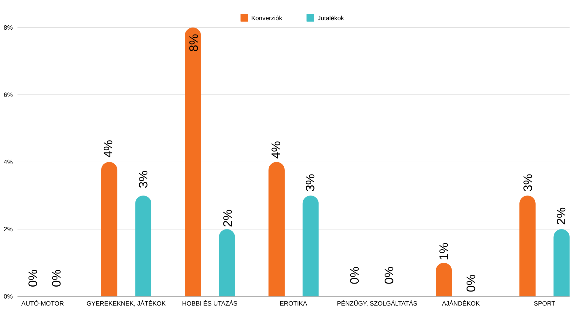 Konverziók és jutalékok szegmensekre való eloszlása 2024 júniusában a magyar piacon