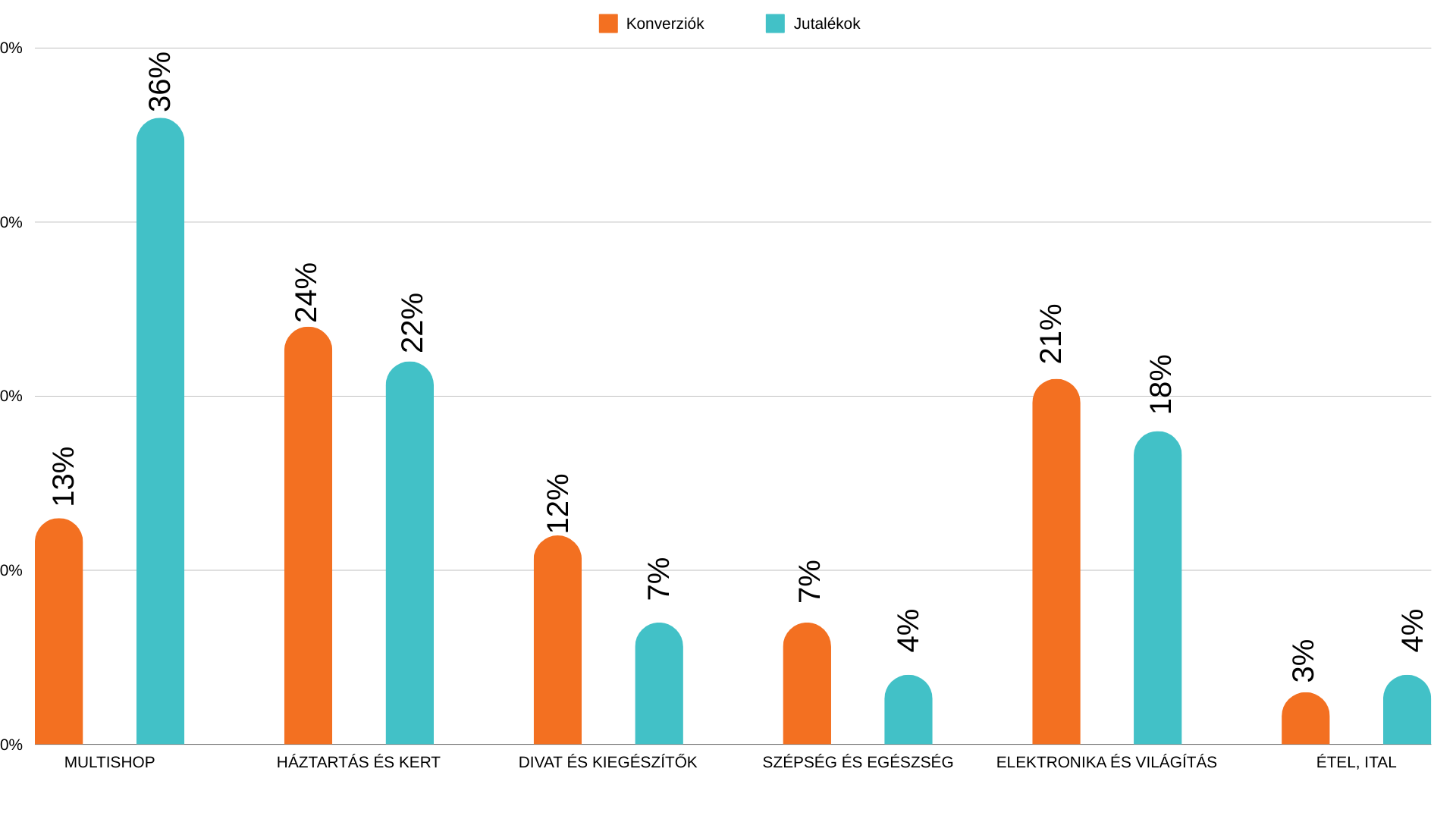 Ahogy minden hónapban, júniusban sem volt ez másképp, a több konverziót és jutalékot is a Multishop kategória hozta partnereink számára. Viszont a legnagyobb növekedés a Háztartás és Kert kategóriában ment végbe, ahol a konverziók aránya 7%-ot, míg a jutalékoké 4%-ot emelkedett. 1-1%-ot nőtt az Elektronika is, és ugyanennyit esett vissza a Divat és Kiegészítők, valamint Étel, Ital kategória is mindkét mutatót tekintve. A részleteket megtalálod lejjebb.