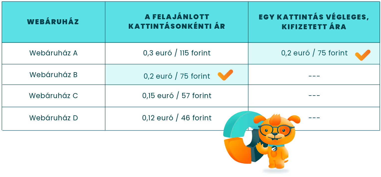 Saját Google Shopping kampányok esetén a Google egy árat számít fel minden egyes átkattintásért az elhelyezett terméktől a webáruházadba.