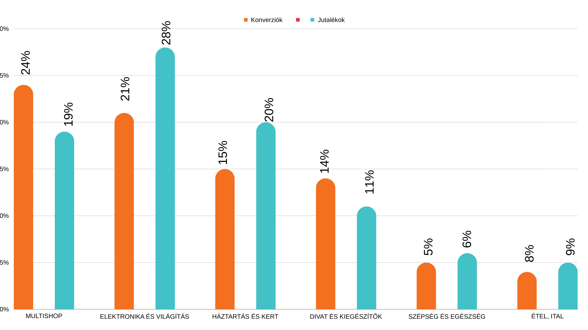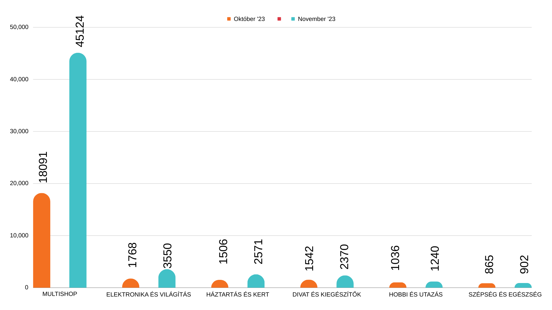 Kicsit sem meglepő, de novemberben minden szegmensben növekedés volt tapasztalható. A legnagyobb konverziószám emelkedés a Multishop, valamit Elektronika kategóriákban történt