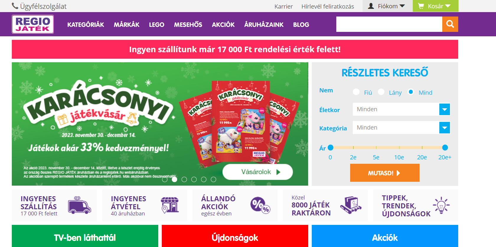 REGIOJáték.hu – a sort az egyik legújabb kampányunkkal folytatjuk, ahol a minden gyerkőcnek találsz valamilyen izgalmas ajándékot. Ebben a vásárló segítségére van az ajándékválasztó, de nyereményjátékkal és karácsonyi játékvásárral is kedveskednek. Partnerként pedig az akár 10% jutalékot érdemes kihasználni 😊