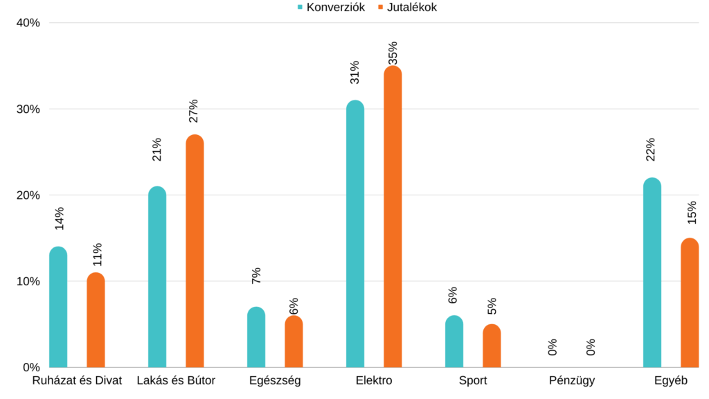 A magyar piacon már jelentősebb változás látható. Az Egyéb szegmensben 10 százalékkal nőtt a konverziók száma, viszont a többi szegmensben mindenhol csökkentek a konverziók. A legjelentősebb csökkenés az Elektronika szegmensben volt.