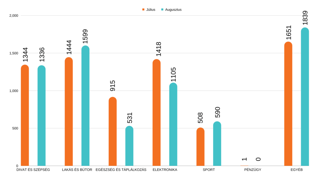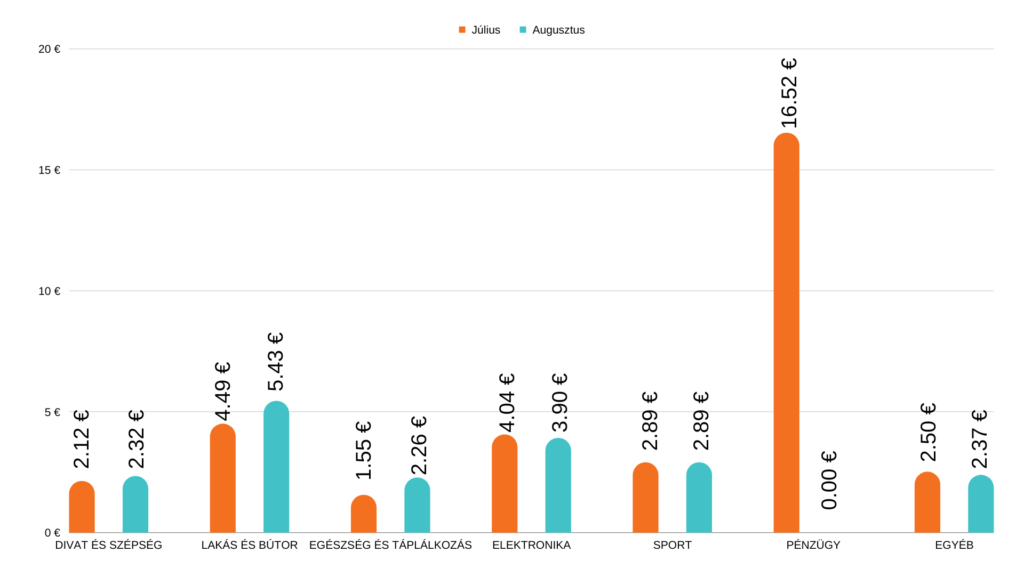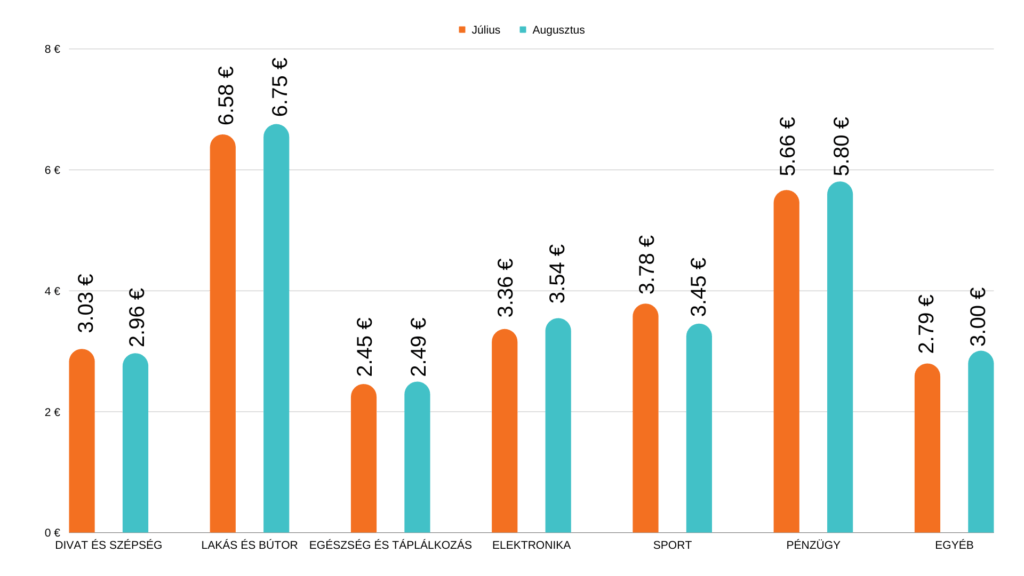 A magyar piacon is jók a hírek, ami a rendelések átlagos értékét illeti. A Divat és Szépség, az Elektronika és az Egyéb szegmensek stabilan tartották magukat, viszont nagy örömünkre a Lakás és Bútor, az Egészség és Táplálkozás és a Sport szegmensben jelentősen nagyobb értékben rendeltek a magyar vásárlók augusztusban, mint júliusban.