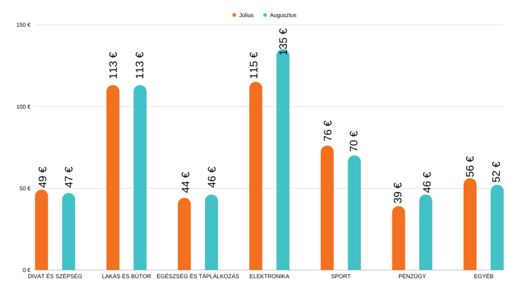 A rendelések átlagos értéke többé-kevésbé stabilan tartotta magát, jelentősebb változást az Elektronika szegmensben láthatunk, ahol ugyan kevesebbet rendeltek a vásárlók, viszont nagyobb értékben, mint júliusban.